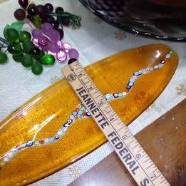This is authentic Murano glass that I personally bought while in Italy. The tray is a beautiful clear gold with classic "Murano beads". The tray is perfect. Pick up in Latrobe. Also available are the Murano glass grapes. Three available for $5 each. Green and pink are perfect, the dark purple has one cracked leaf. Reasonable offers accepted. Smoke free home