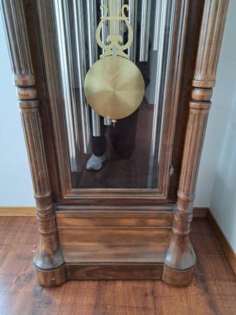 My Father bought this clock new 52 years ago. He just moved to a Senior housing apartment and doesn't have room for it. It is in excellent condition. The following is a description by the site herschedehallclocks.com/clocks "An extremely handsome hall clock of Italian design. Named for the intrepid Italian who discovered America. The Christopher Columbus was perhaps the most unique style of all Herschede Hall Clocks; reason being is the base design. It stands stately and decorative in the home. Fine precious Appalachian Cherry Wood was used to make this cabinet which produces a beautiful contrast of finish and book matched wood. Beveled glass surrounds all three sides which allows for view of full size chime tubes made of finely polished nickel-plated brass or golden washed. This adds immeasurably to the beauty of the clock. Dial is delicately hand pierced and hand engraved. 9 tube, with full lyre pendulum and triple chime movement. Available in both light and dark Cherry Wood and nickel chrome-plated or golden washed chime tubes. This clock speaks in cathedral tones and is the central attention of the home".