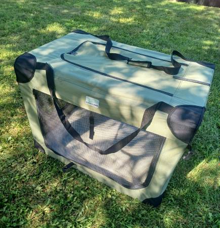 Large pet crate- soft sided- collapsible- lightweight- easy storage. Measures 35 inches long by 25 inches tall by 25 inches wide. Pick up in Ohioville, Tusca Plaza in Brighton, or Calcutta OH