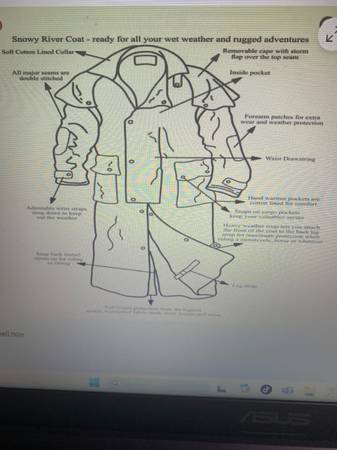 "NEW" Outback Trail Long Winter Coat -"Keep Warm n Dry" Purchased in Alaska for $185.00, sell for $ 95.00--"Great for Frigid Weather'- Size large -Never Worn-"IDEAL GIFT" -See Pictures for more information-