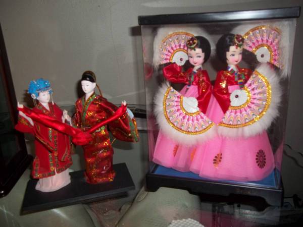 dolls for sale- 30 for the 2 chinese dolls SOLD-30 for the 2 fancy dolls with the fans!-- PHONE NUMBER