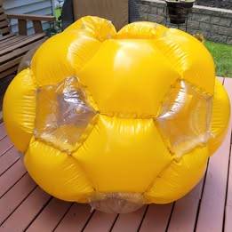 This inflatable fun ball comes in a vibrant yellow and is size Jumbo (51"). Easily inflates with a hand air pump (not included). Crawl inside for hours of fun· Roll, Crawl, Spin, Tumble, Bounce - Indoor and Outdoor Fun· 2 Separate openings, 11 transparant windows· Sturdy multiple air chamber construction - holds up to 150 pounds. Rolling Tumbler Adult Kids Toys Crawl inside for hours of fun. Inflatable Fun Ball - Jumbo 51" - Giant Crawl Inside Inflatable. The Kid's Inflatable Fun Ball is a fun and unique way to play. You can crawl inside for hours of fun and exercise. Bring your Fun Ball outside or use it inside either way it is a safe! You can even create games and play with your friends! It's easy to roll around on different surfaces or even bump into things with the cushion padding the inflatable provides.