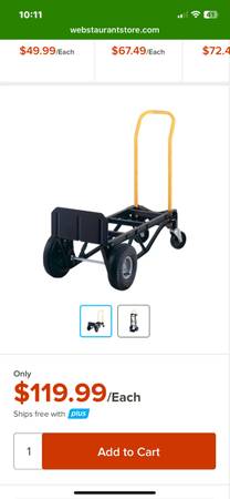 I have a Harper dolly for $60. These dollies sell for about $110-$150. Depending where they are being sold. I am Just looking to get $50 or best offer. This dolly is in really good shape. Just put new tires on it. The dolly can be used as a regular stand up dolly on 2 wheels. Then, you can take the pins out and convert it into a 4 wheel cart. Load capacity for regular dolly use is around 800lbs. But if you use it as a 4 wheel cart it’s about 1600lbs. Text me if interested. I’m located in south hills.
