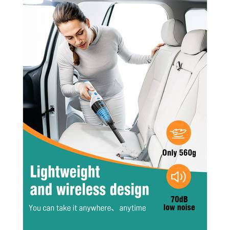Washable HEPA Filter & Low Noise: Designed with advanced noise reduction under 70dB, this car vacuum cleaner ensures quiet cleaning. The washable HEPA filter maintains powerful suction and prevents dust buildup for long-lasting performance.