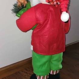 Standing 26" Santa Claus Christmas Felt Accented Holiday Home Welcome Decoration Features: Santa wears a red suit with white trim, green pants and mittens, and holds a green sack with a small...