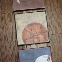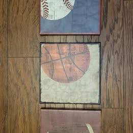 Three 8 x 8 Sports Art Stretched Painted on Canvas - Football, Basketball, Baseball. Wrapped canvas art prints. Ready to hang in your Sports themed room.