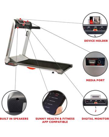 Purchase from Amazon in 2020. No longer use it as I have joined a gym since the purchase. Amazon describes it as: Sunny Health & Fitness Foldable Treadmill, 20-Inch Wide belt The images I am...