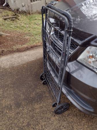 Folding 4-wheel metal shopping cart for sale. Call Mike Penn Hills . If you reply by email and do not see my response, please check your spam folder.