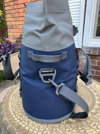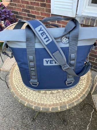 YETI Hopper M30 Soft Cooler, used once and in excellent condition. Can carry 42 cans (only) or 32 lbs. of ice (only) Wide-mouth opening Ultra-strong magnet closure Quick-release buckles