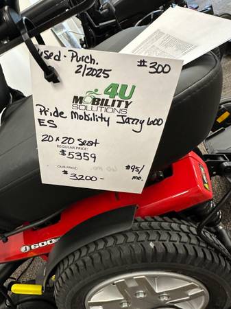 Pride Mobility Jazzy 600 ES power wheelchair, red, 20x20 seat, purchased Feb 2025. Used 3 times. Comes with charger, all product manual/paperwork. See photos. Like brand new. Retails for $5,359.00....