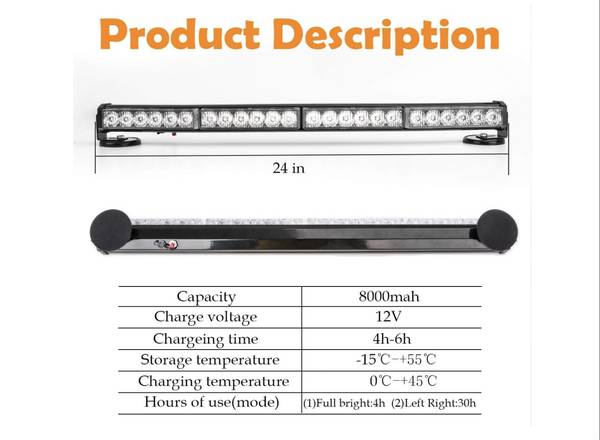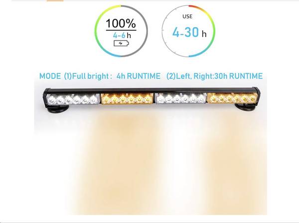 Battery Power - The wireless warning light bar has a built-in battery, Up To 4-20 hour of Runtime.