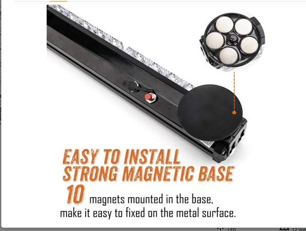 24 High Intensity Leds - Brighter and more effective than standard Led Strobe Lights, it is even visible during the daytime conditions.10 magnets mounted in the base, make it easy to fixed on the metal surface.