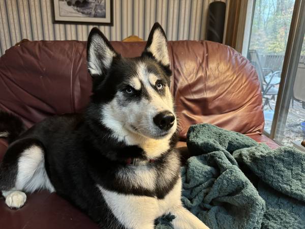 Axel is a beautiful, purebred 6-year-old Husky (birthday August 2019). He’s a 55-pound neutered male, up to date on vaccines, microchipped, and in great health. His bright eyes, beautiful markings, and affectionate personality make him unforgettable.