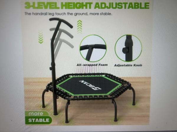 48" Mini Trampoline, 550 LBS Fitness Trampoline with T-Adjustable Handle Bar Bungees, Stable & Quiet Exercise Rebounder for Adults New Open Box