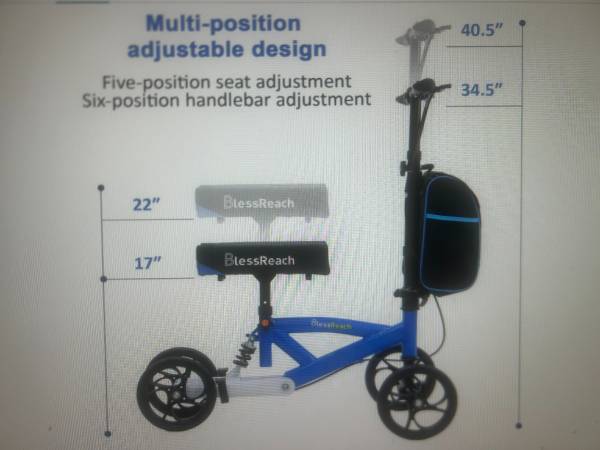 Steerable Knee Walker for Foot Injuries Compact Crutches with Dual Rear on-Wheel Brake and Shock Absorption Under The Knee pad NEW OPEN BOX!