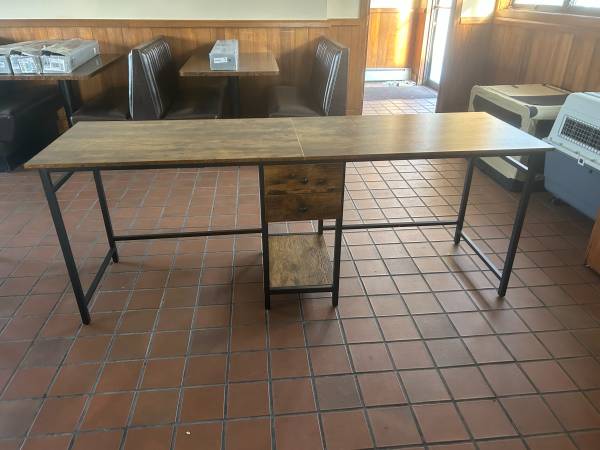 Tribesigns Two Person Desk 79 Inch Double Desk with 2 Drawers Large Computer Desk Long Desks with Storage Shelves Rustic Brown New Open Box