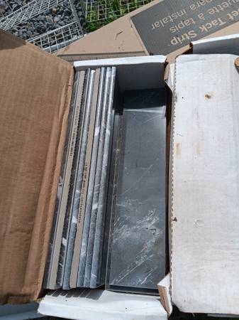 17 Calacatta black polished bullnose gray marble tiles. 2-3/4 inches by11 inches. Can meet in Robinson or Hookstown.