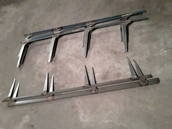 Selling the whole lot together in one package deal . They are welded and fixed height shelves and come just as you see them . Great for garage , workshop or storage room . The details of the shelves are below and it's a cash only deal I