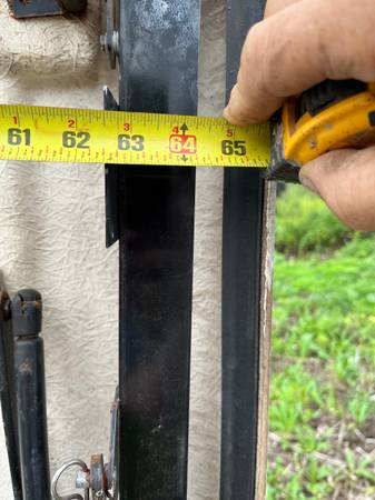 Used tonneau sportwrap bed cover manufactured by Ranch Fiberglass. Serial number displayed in pictures. Damage shown in sixth and seventh pictures. Rail measurements shown in last two pictures...