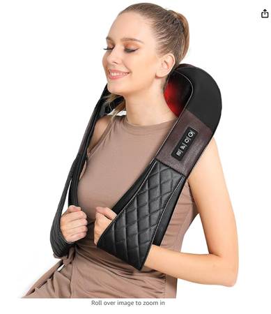 New in box with charging cord Electric deep tissue 4D Kneading Massage pillow for shoulder Muscle Pain Relief For use at home, office, or car Cost $47.99