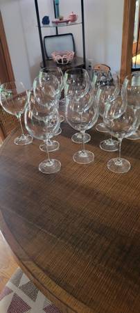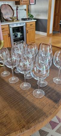 12 Lenox Red Wine glasses. 8 inches tall. Never used. Excellent condition. EMAIL COMMUNICATION PLEASE!