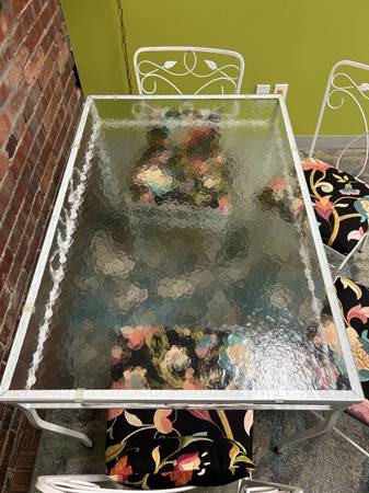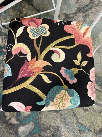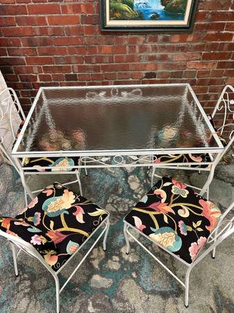 Excellent vintage condition. The seat cushions were recently recovered with a lovely fabric. I also have the matching sofa, 2 chairs and 3 tables that have new coordinated cushions. Selling that set separately for $500.