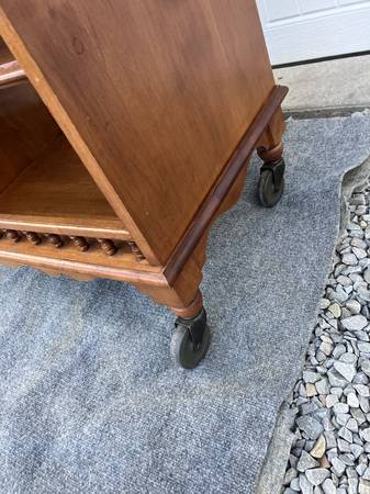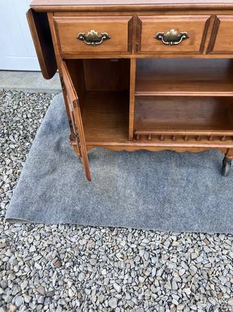 Drop leaf sideboard. 1 drawer, 1 cupboard and 2 shelves. opened is 56.5"L. closed 36"L. 17.3/4"D, 30.5"H. In good condition. 195.00. Cash Only