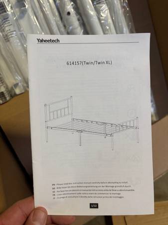 White Metal Twin Bed Frame. NEW Box was opened. Never built. We bought two and one was too small for my daughter.