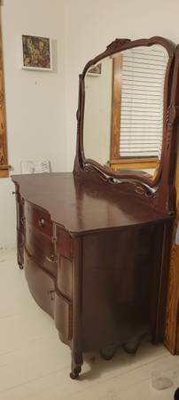 I'm selling my dresser, It's cherry wood, and an antique. All drawers work, and mirror is in good shape. Asking $250 OBO Must pick up, cash only.
