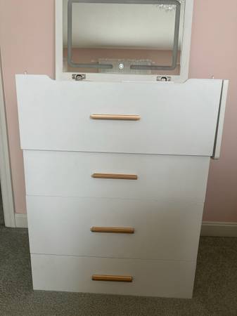 Small Vanity Desk with Mirror and Lights, Makeup Vanity Desk with chair