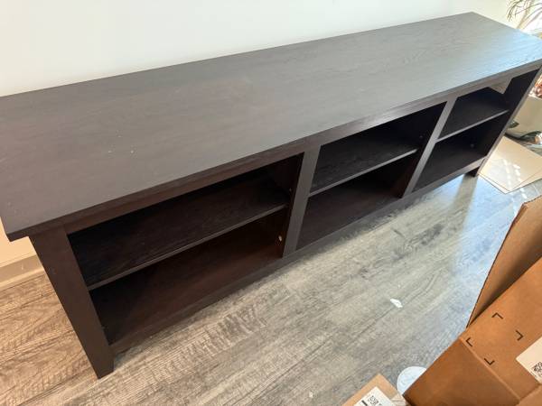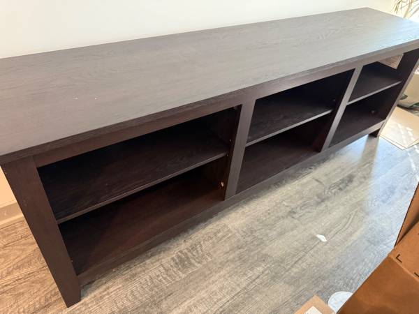 This beautiful TV STAND is brand new Just put it together. Decided to purchase at different one It’s about 71” long and 25” inches high. I bought it for $275 and Im selling it for $100. You must have the appropriate vehicle to pick it up. I am unable to move it so you,use be prepared to pick it and bring it to your vehicle as it is already put together.