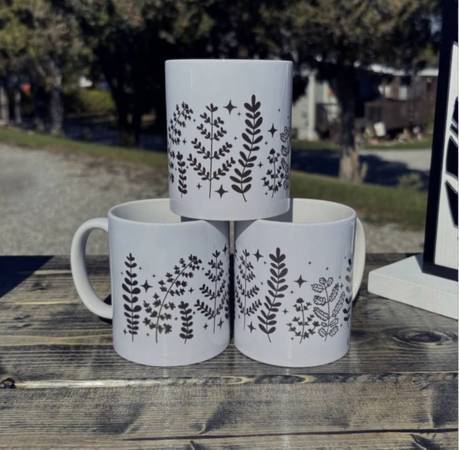 New piece, includes set of new mugs made by Simple Little Joys and mug rack. Measures 48 x 22 x 36h Showroom of other furniture, art & discounted wholesale inventory available daily by...