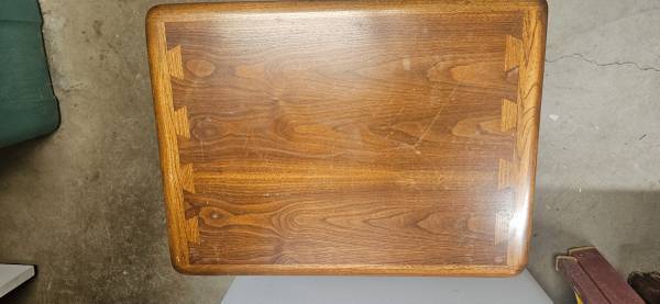Beautiful, mid century modern walnut end table with bottom shelf. Dovetail detail on top. From the Lane Acclaim line. Measures approximately 21 inches wide x 28 inches deep and 20.5 inches tall....