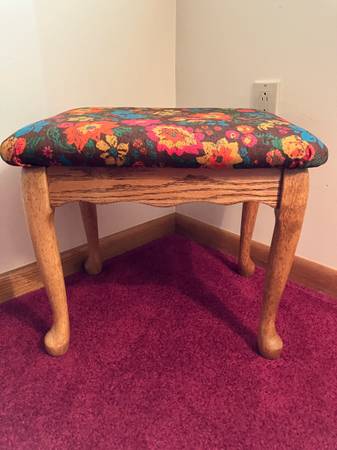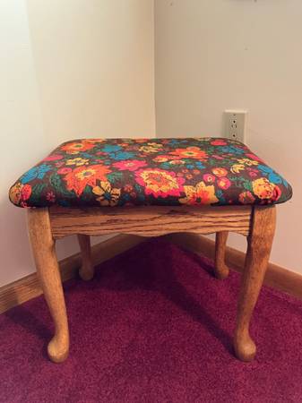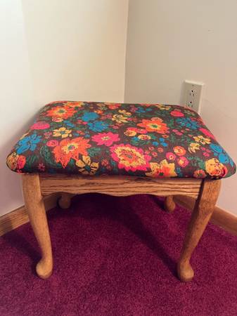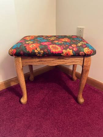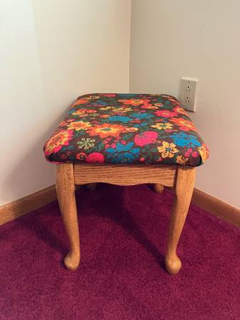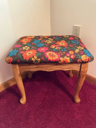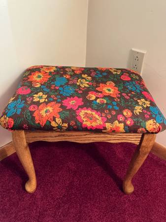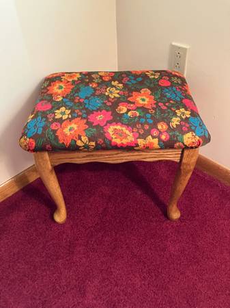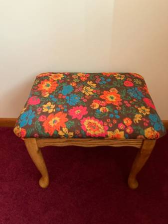 Decorative Wooden Stool - 20”L x 16”W x17”H. Brand new fabric was just added! 🌺 COST is $30.00. CASH ONLY PLEASE. Smoke & Pet Free Home. Driveway pickup near FINLEYVILLE, PA 15332. (Nottingham Township)