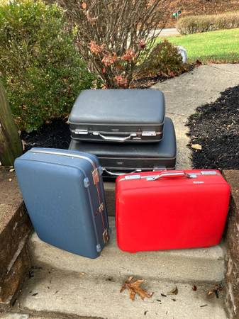 Lot of 4 Suitcases 4/$50.00 or see individual prices below. All are in overall good condition. Some are more worn than others. CASH ONLY PLEASE. Driveway pickup near FINLEYVILLE, PA 15332. (Nottingham Township)