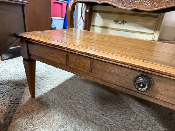 3 piece living room tables set. 2 nightstands with drawer. One coffee table. All in good shape. Price is for all! End tables measure 20 x 25 x 21 tall. Coffee table 48 x 20 x 15 tall. Pickup in...