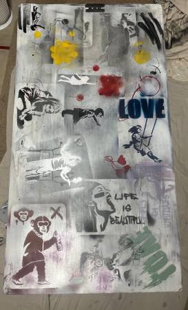 Solid Art coffee table, graffiti. Money goes to HS art club for supplies. Thanks for looking