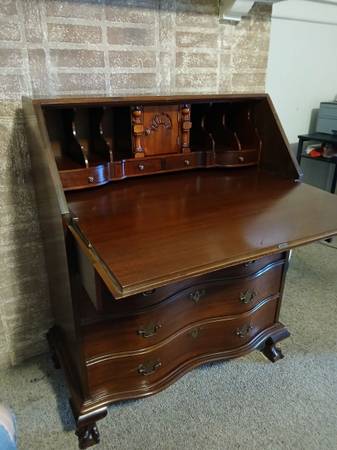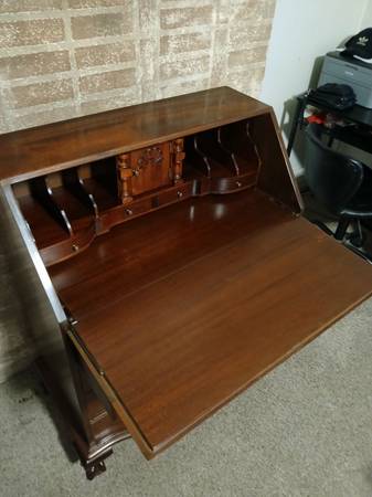 OR BEST CASH OFFER ! No low ballers please . This is a beautiful 1930,s desk with 2 hidden compartments and is stunning condition . Excellent condition , no repairs or breaks . Would look good in any home . Looking for a good Cash offer prefer . I would also concider home defense items , hunting items or high end set of home speakers , gold jewelry as long aa its of equal value .