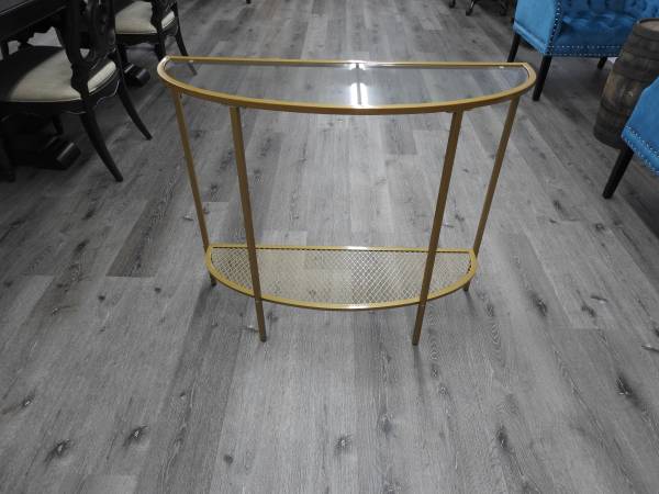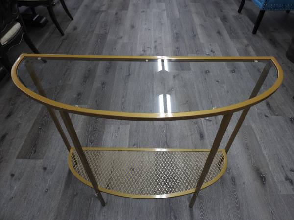 Glass Half Moon Console Table/Bar/Entry Way. New and in perfect condition. 36'' X 12'' X 32'' Please Call, I will not respond to texts.