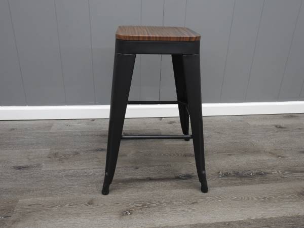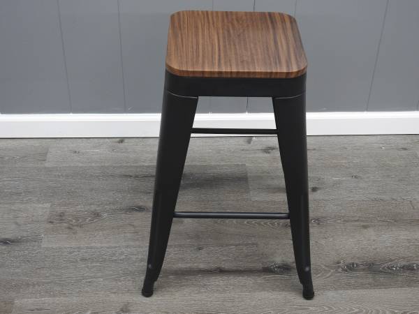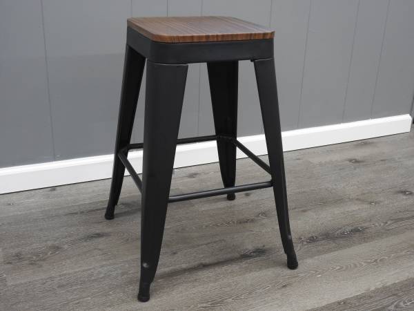 Industrial style stools. Wood top, metal frame. Very sturdy, heavy duty. 24 '' High. I have 4 of these and am asking $50.00 each as these are brand new.