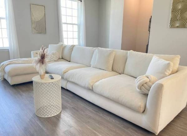 Great condition I’ve had this couch for 3 months, comfy couch I have ever sat on, I will Be moving so I won’t be taking this amazing couch, you can literally fall asleep on this couch it’s so comfy....