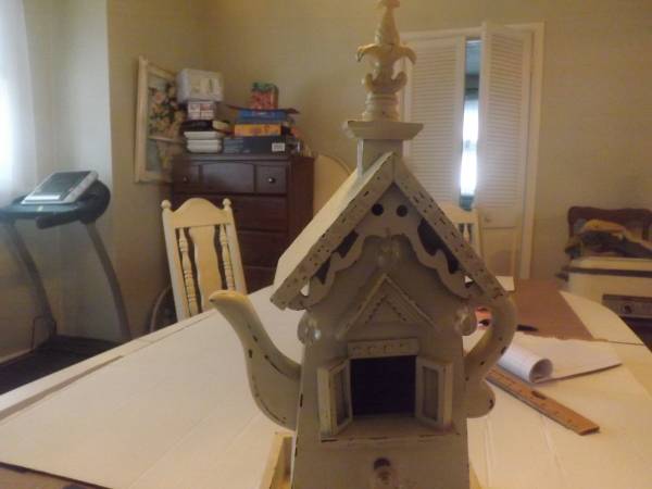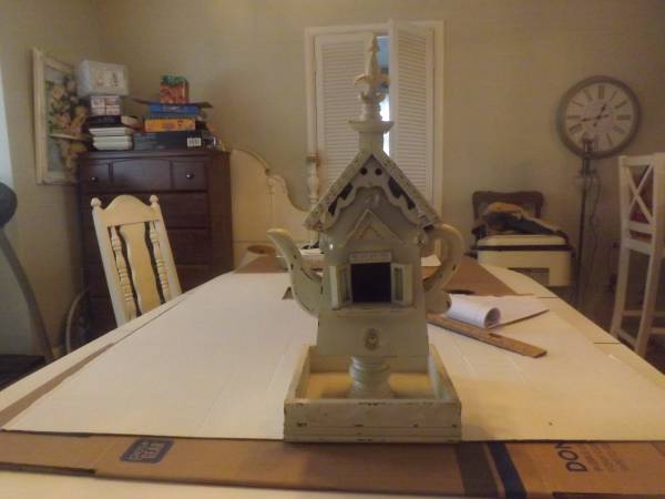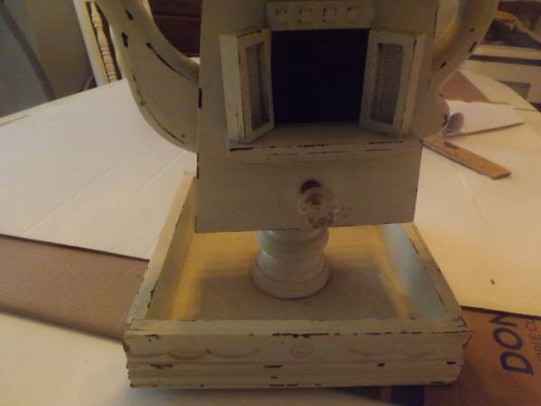 Very nice small wooden bird house. Height - 18"; base 8" x 8". TY for looking.