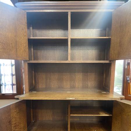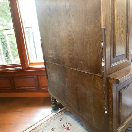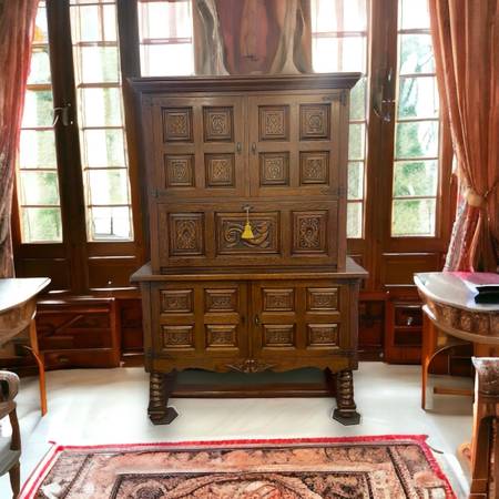 Beautiful cabinet with intricate carvings. Comes apart in two pieces. Has original keys, each compartment locks. This is a very heavy cabinet, even when disassembled so nncustomers will need to bring help upon pick up. A dolly can be provided upon request at time of pickup. Pickup in monongahela.