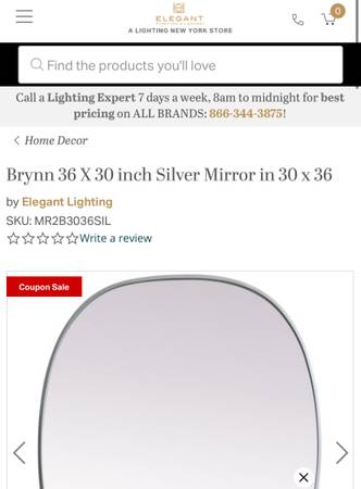 New-Open Box Mirror by Elegant Lighting Silver Bezel SKU: MR2B3036SIL Paid $180 and ended up not installing it. 36"x30" Can be hung horizontally or vertically.