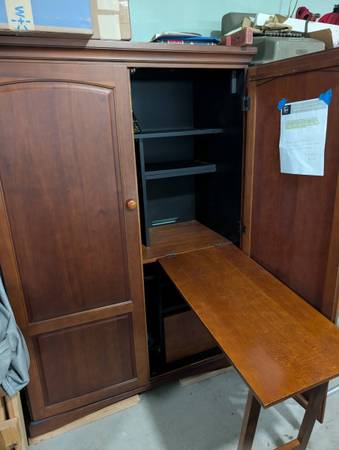 Riverside Furniture Office Armoire with Foldout Desk. Perfect for home office or for a student. Tons of storage. A solid piece and in very nice condition. 48"Wx22"Dx67"H. Make Offer need space.