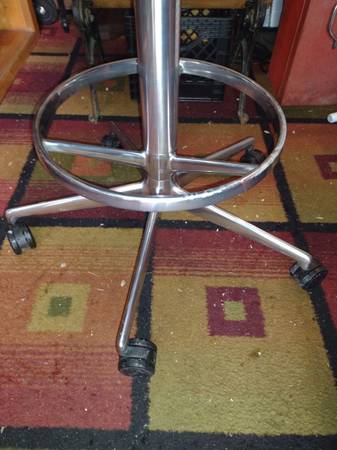 Really well-built chrome-base stools on wheels for sale. They measure 20" across and 27" high. 5 stools available. $65.00 each. Discount if you buy more than one. Product of Toronto Canada. Delivery is available. Call Mike Penn Hills show contact info