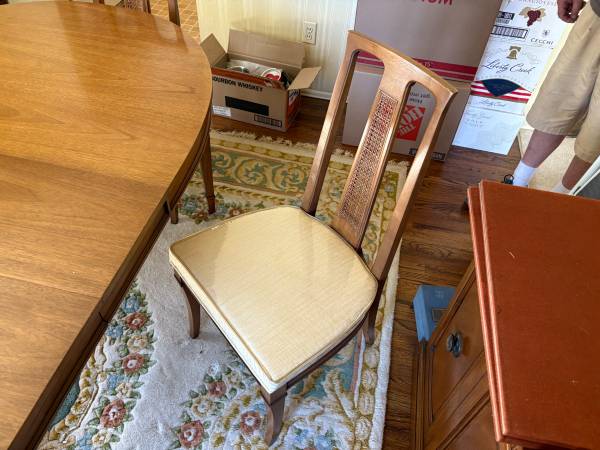 Drexel Heritage Company Triune Dining Room Furniture for sale. $1,750 CASH ONLY! It’s in great condition—dining room chair cushions are covered in plastic! Included in set: Dining Room Table, Chairs(6), Sideboard, (2) leafs, and a Mirror. It’s the Triune Line from Drexel—MCM style. Pick up in the Highland Terrace Neighborhood (Mount Lebanon, PA)