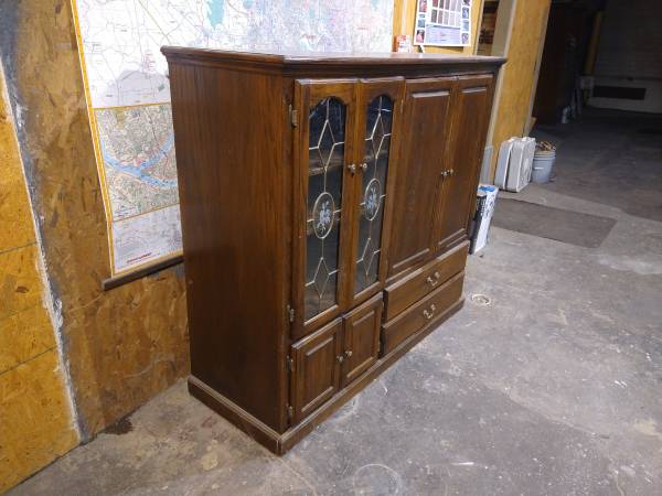 Oak Entertainment Center $25.00 Length = 60" / Width = 22" / Hgt. = 54 1/2" Call / Text John at