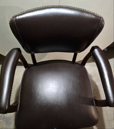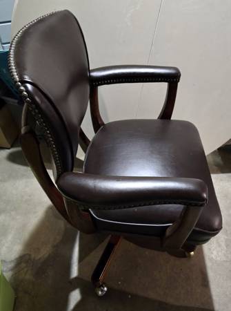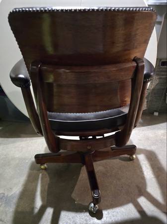 VINTAGE LEATHER SIKES OFFICE CALL TEXT ONLY PLEASE CHAIR on WHEELS ADJUSTABLE TO YOUR PREFERRED HEIGHT WOODEN LEATHER BRASS NAIL ACCENT