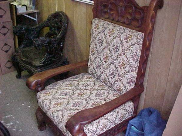 I HAVE 2 LIKE NEW, Hand carved, Windsor Court Arm Chairs, the roses, leaves and shells found throughout the rich solid wood of this chair give it a distinctly Baroque feel. Hand-upholstered front and back, it is 8-way hand-tied and double welted in a Tudor-style jacquard tapestry of rich gold's and burgundies. Harry, show contact info